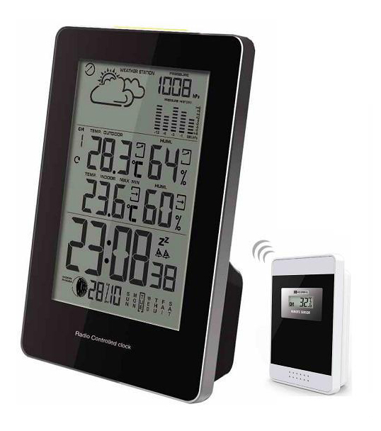 Barometryczna prognoza pogody z temperaturą i wilgotnością.